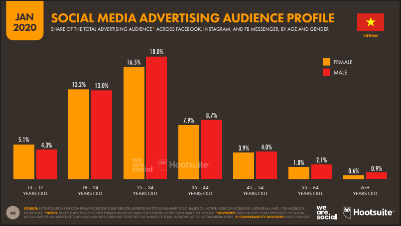 – 18 – 44 là độ tuổi sử dụng và tương tác mạng xã hội nhiều nhất.