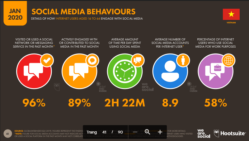 – 2h22’ là thời gian trung bình dùng mạng xã hội trên 1 ngày của cư dân mạng.