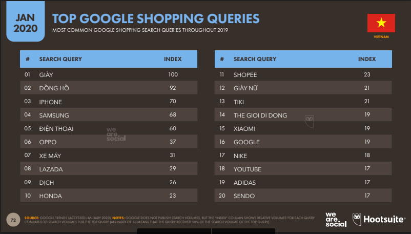 – Giày, Đồng hồ và Iphone là top 3 sản phẩm được mua sắm nhiều nhất trên Google Shopping.